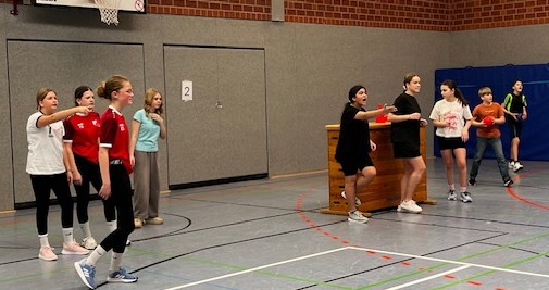 Nachdem die Klassen in der Vorrunde alle gegeneinander gespielt hatten, wurde unter den beiden besten Klassen der Vorrunde das Endspiel ausgetragen. Hier setzte sich in einem spannenden Spiel die Klasse 5b durch.
