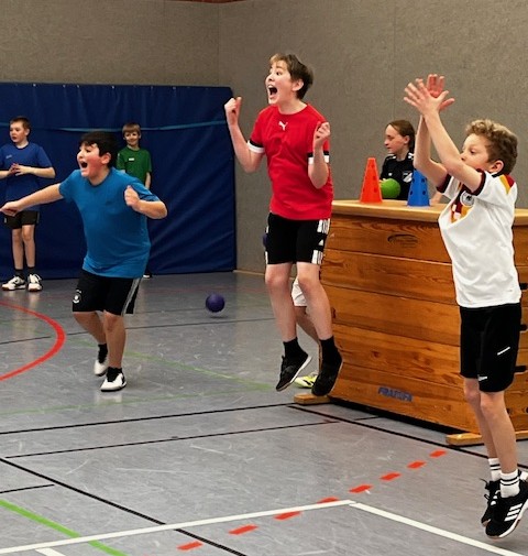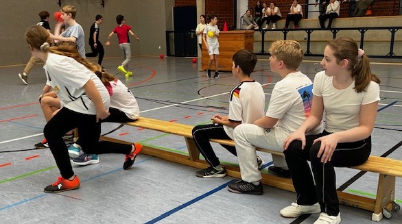 So trafen sich am Dienstag, den 10.02. mit „oben gute Laune und unten gute Laune“ die SchülerInnen unserer 5. Klassen mit den Grundschulkindern der vierten Klassen aus Glandorf und aus Schwege zum sportlichen Wettkampf. Dass sie alle ihre Sache sehr ernst nahmen, konnte man nicht nur der Wettkampflautstärke, sondern auch den verschwitzten Gesichtern entnehmen ; )