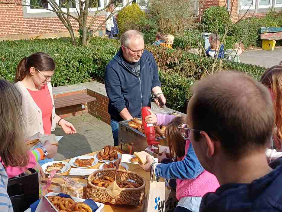 Das bunte Treiben dieses Vormittages, zu dem auch das informierende Gespräch der Schulleitung mit den Eltern gehörte, entließ alle interessierten Gäste sicherlich mit ausreichend Eindrücken und Antworten auf die eingangs erwähnte Frage, was im Sommer die Kinder und ihre Eltern erwartet. Zum Abschluss kümmerte sich der Förderverein der LWS noch um das leibliche Wohl der Gäste mit leckeren Würstchen, Brezeln und Getränken – und das auf dem Schulhof im herrlichsten Sonnenschein.